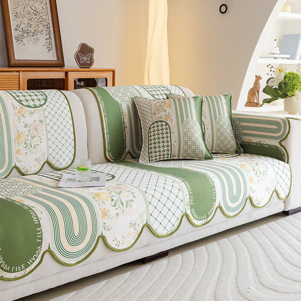 Checkered Velvet Sofa Pad Anti-Slip Quilted Couch Cover