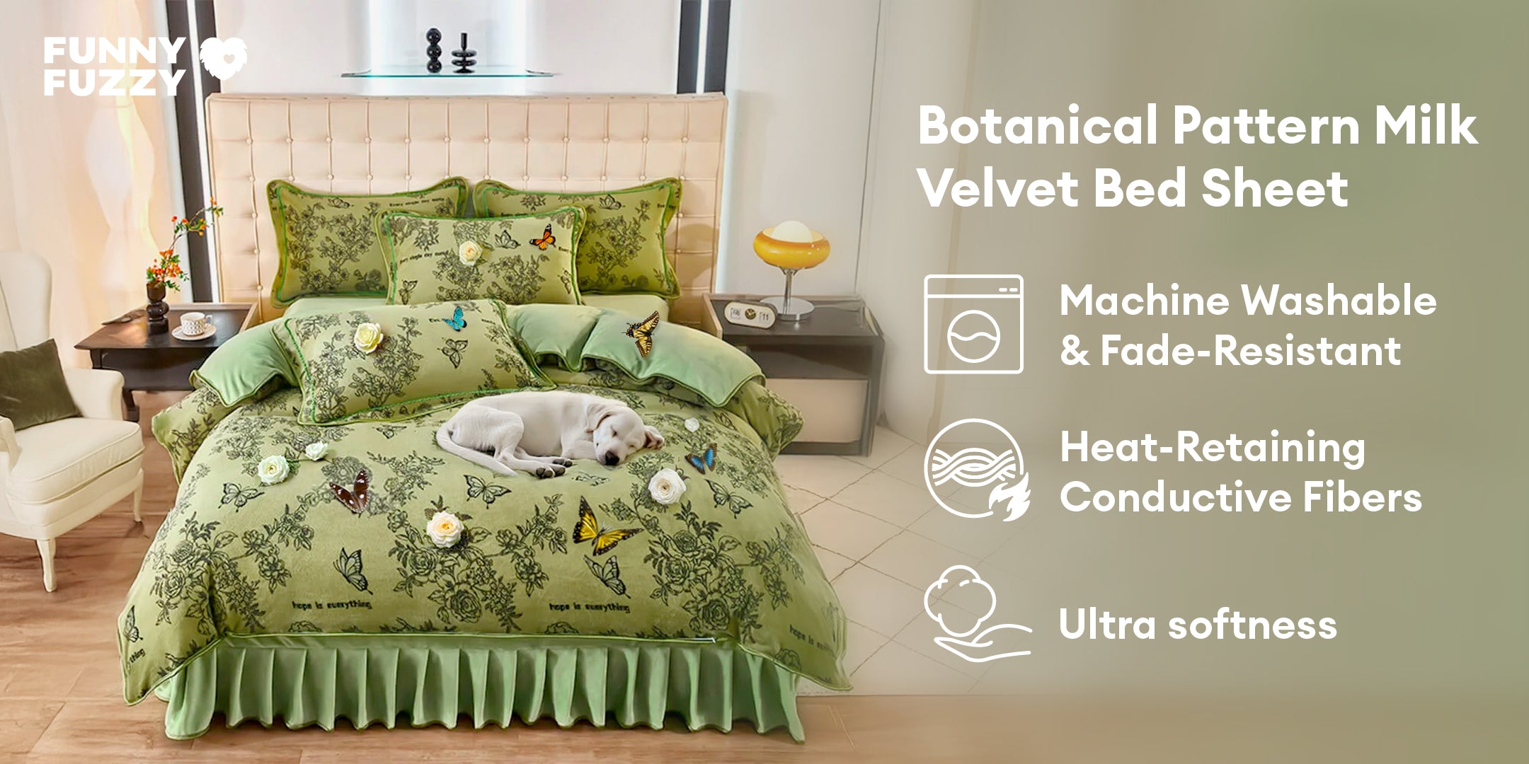On a crisp winter night, surround yourself with nature’s elegance. Wrapped in the soft, cozy warmth of botanical-patterned milk velvet, you and your pet drift into a peaceful sleep, where comfort meets serenity.