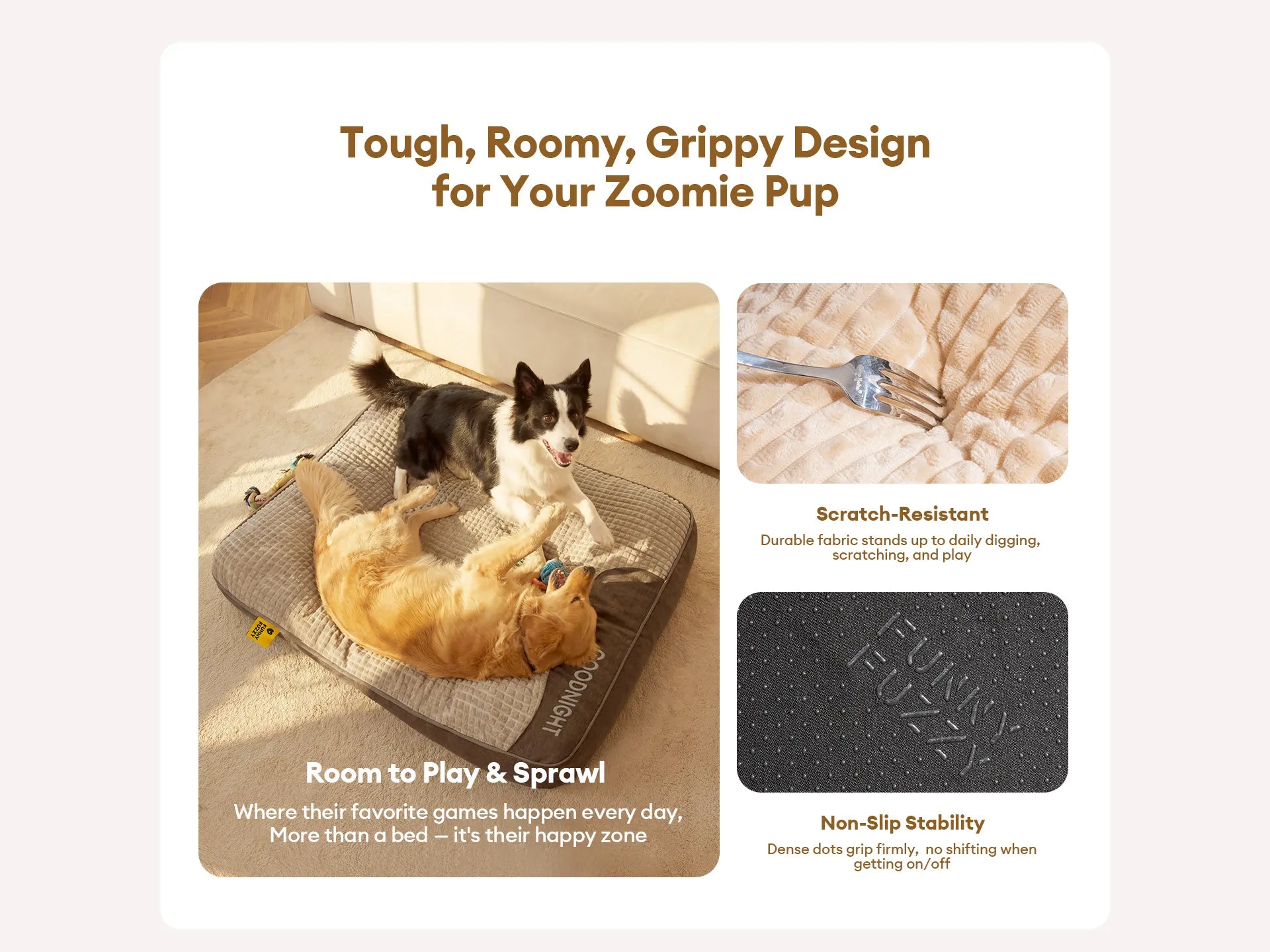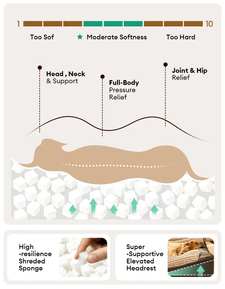 Das Design mit erhöhter Kopfstütze bietet zusätzlichen Halt für Kopf und Nacken Ihres Hundes, verbessert den Gesamtkomfort und ermöglicht einen erholsameren Schlaf.