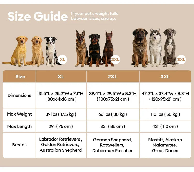 Unser Bett ist in großen Größen erhältlich und bietet für Hunde aller Gewichtsklassen und Größen ausreichend Platz zum Ausstrecken und Entspannen.