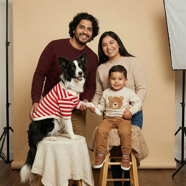 Cozy Sweater de perros de punto con cuello a cuadros: disponible en Pink & Blue