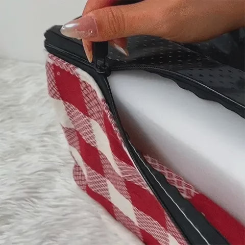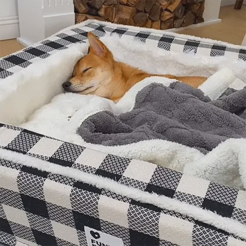 Cama festiva clásica de tartán acogedor perro anti-ansiedad calmante
