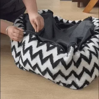 Lit pour chien à chevrons Plush Retreat - The Warm Hugger