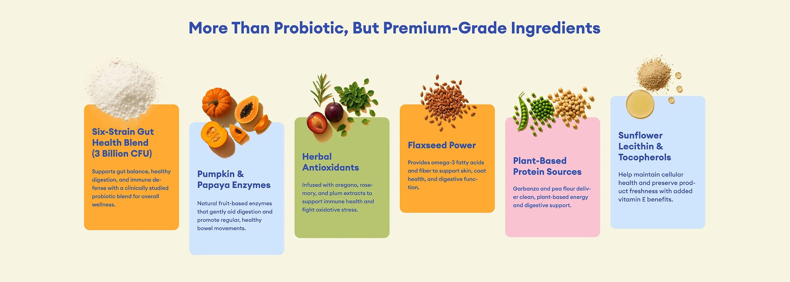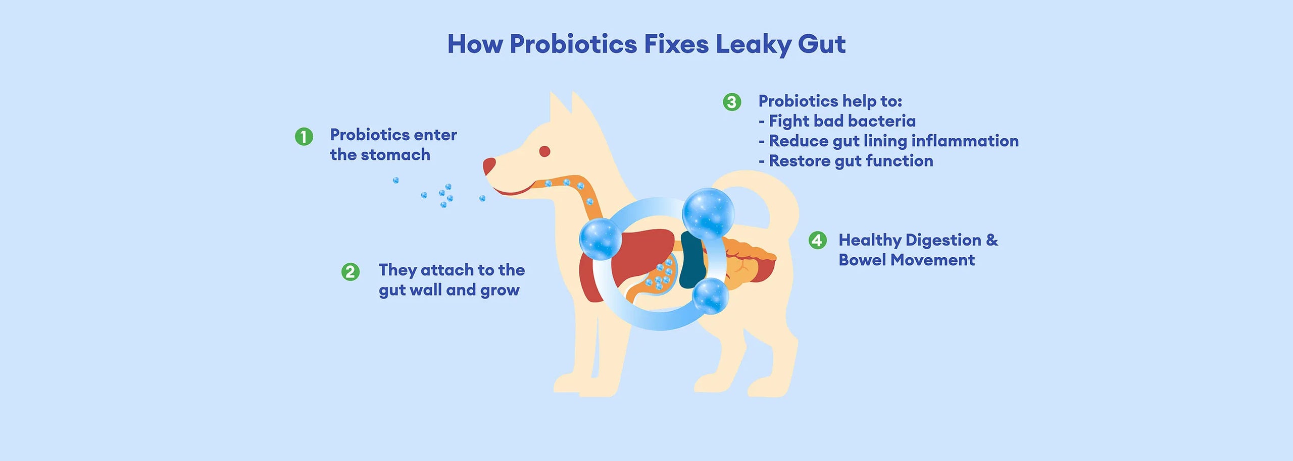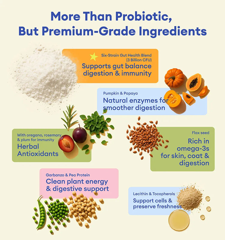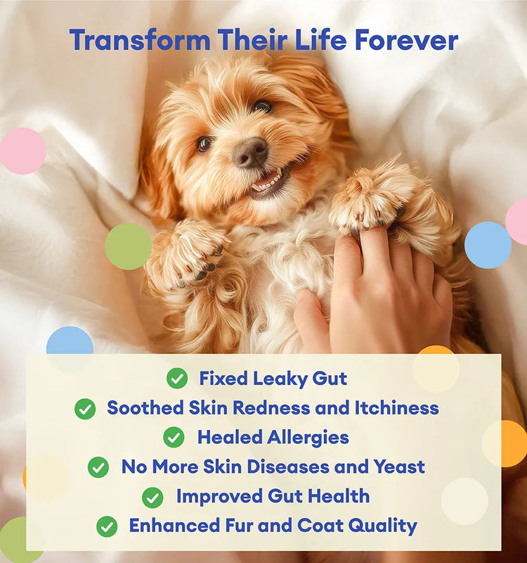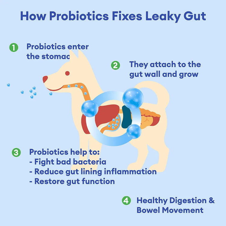 Probiotics are live, beneficial bacteria that support normal digestive function and help maintain a healthy gut and immune system. Daily supplementation can promote regular bowel movements, ease occasional loose stools, and may even support dogs experiencing seasonal allergy-related discomfort.