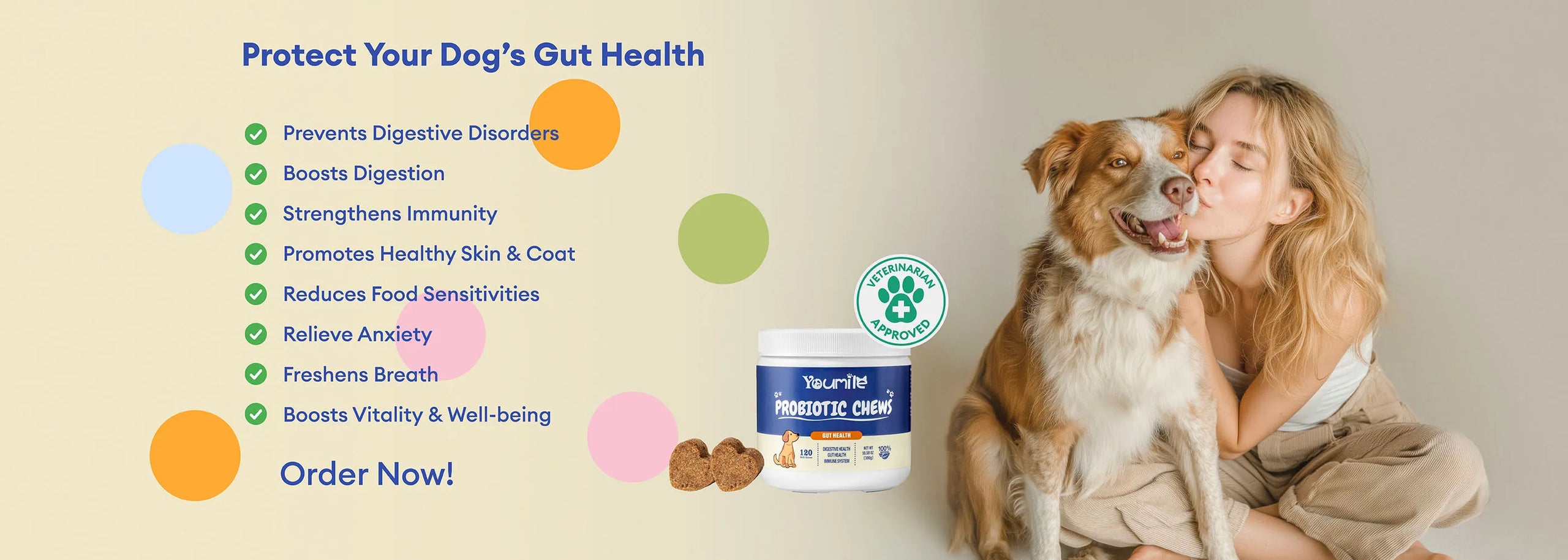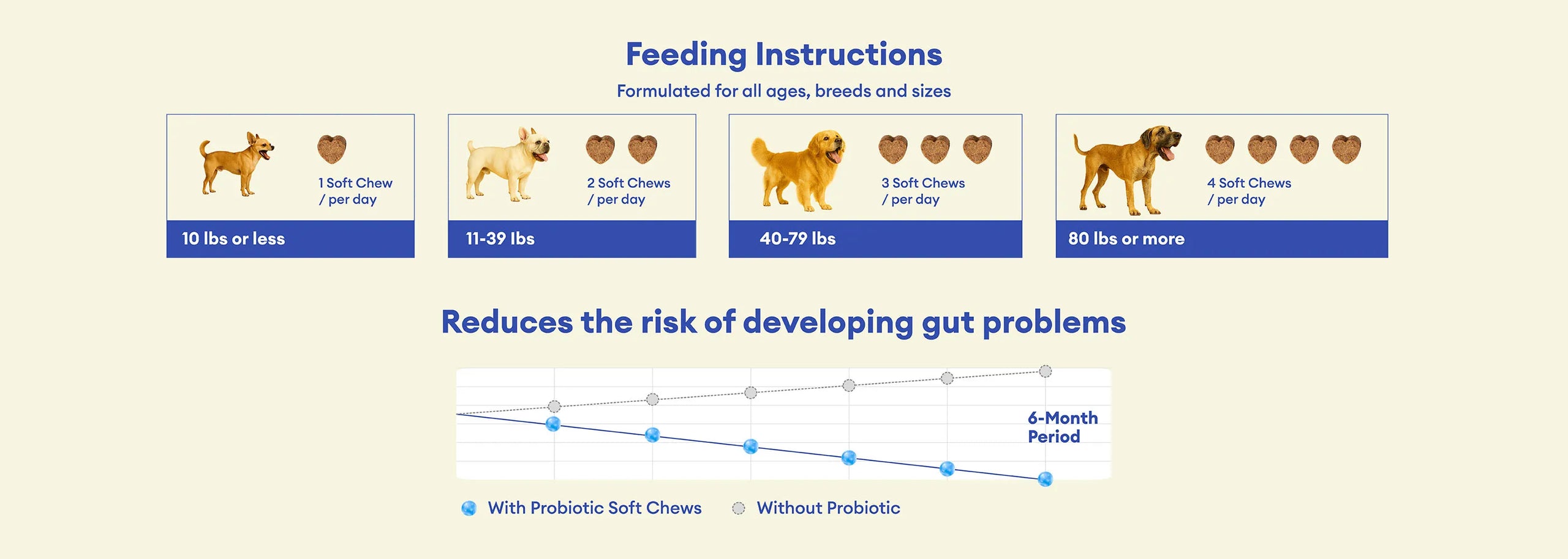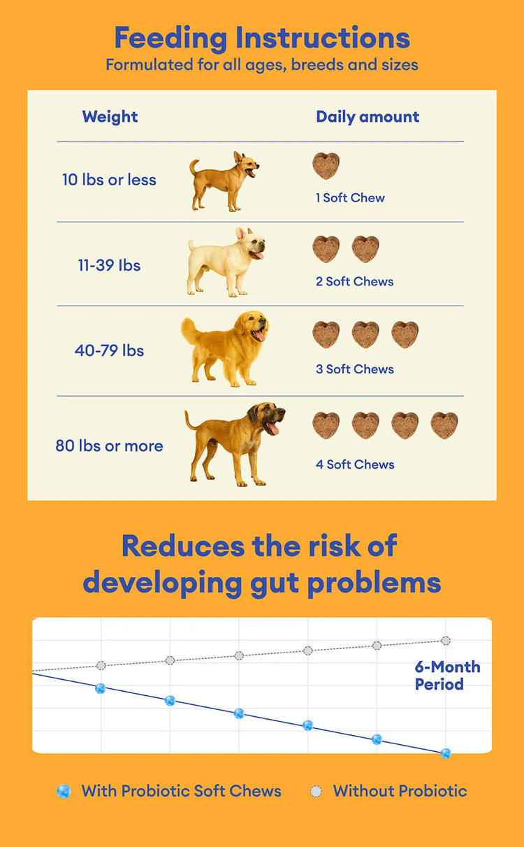 We recommend speaking with your veterinarian to determine the best plan for your dog’s individual needs. That said, these probiotic soft chews are designed for safe, daily use and can be given long-term as part of your dog’s overall wellness routine. They're especially helpful after antibiotics, during diet changes, stressful events, or any time your dog shows signs of digestive discomfort.