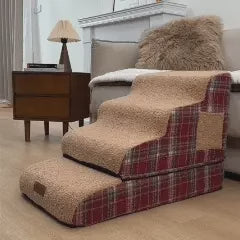 Plush Plaid High-Density Sponge Removable Pet Ramp Stairs - ComfyClimb