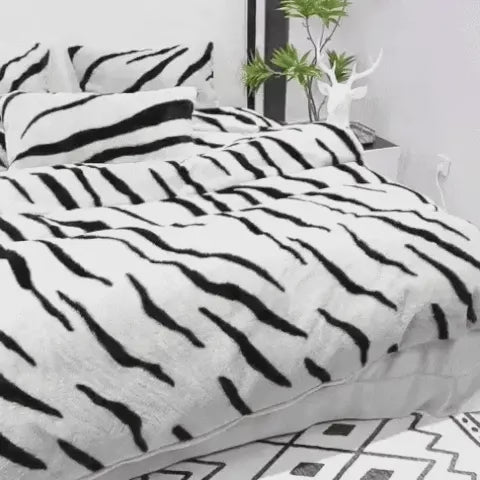 Zebra Thickened Fluffy Fur Bed Sheet Set