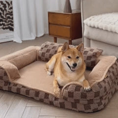 Checkered Fluffy Warm Washable Orthopedic Dog Bolster Bed – CloudNooki